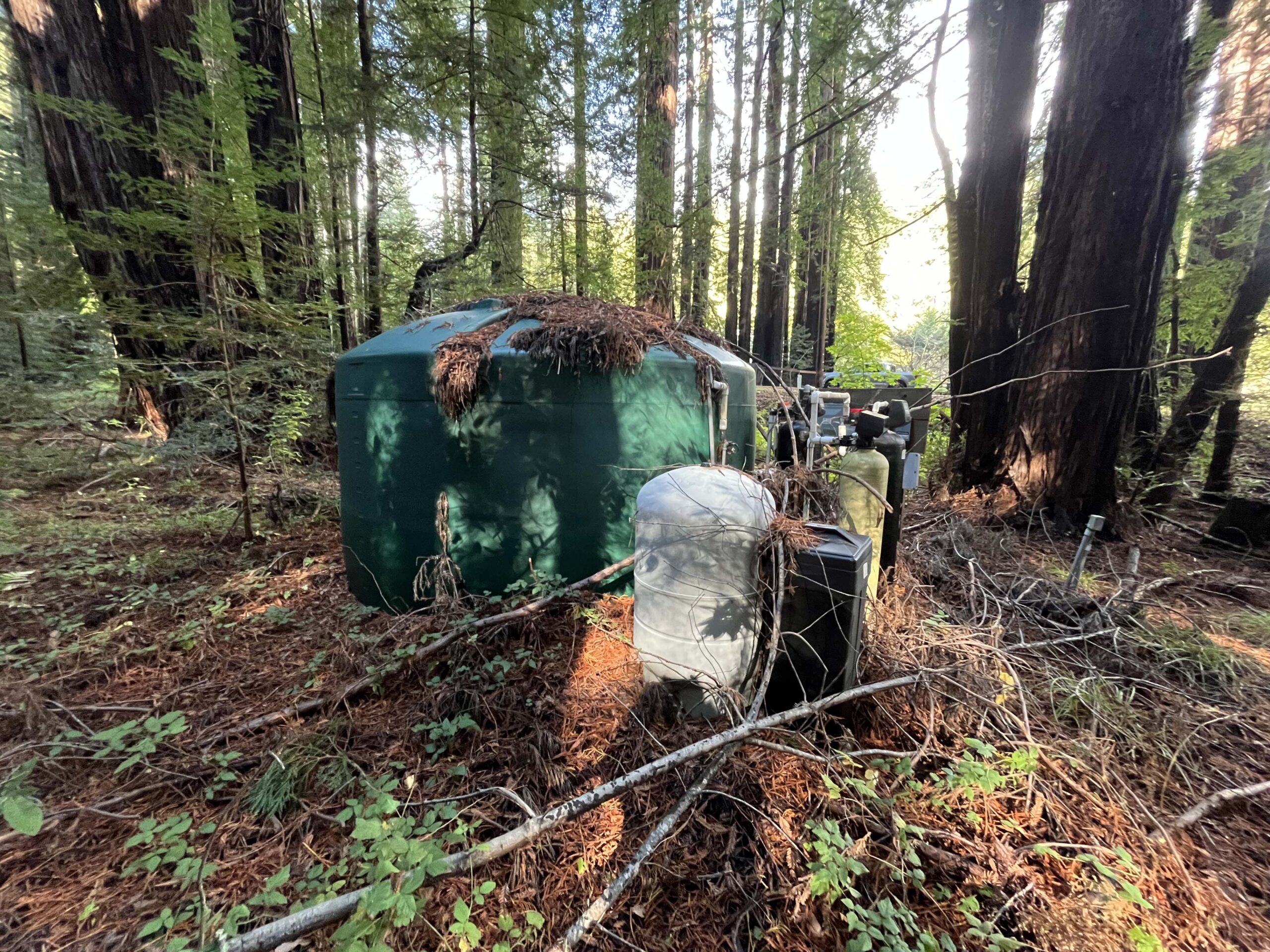 ▼ The developed well recently tested at 5.9 GPM and comes with a complete filtration system and water storage tank.